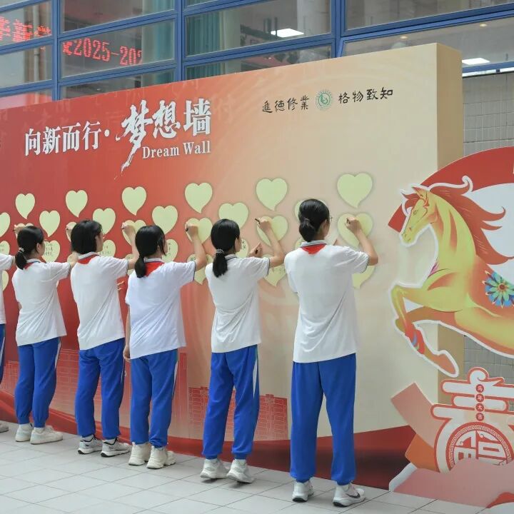 少年有志,祝福相伴。各班级代表在“向新而行·梦想墙”书写班级愿景,定格成长期盼。学校副校长王传平与各年级主任、家委代表携手登台,为师生送上真挚祝福,凝聚家校同心的力量,践行“让教育像森林一样”的初心,为学子们的成长保驾护航,注入温暖底气。