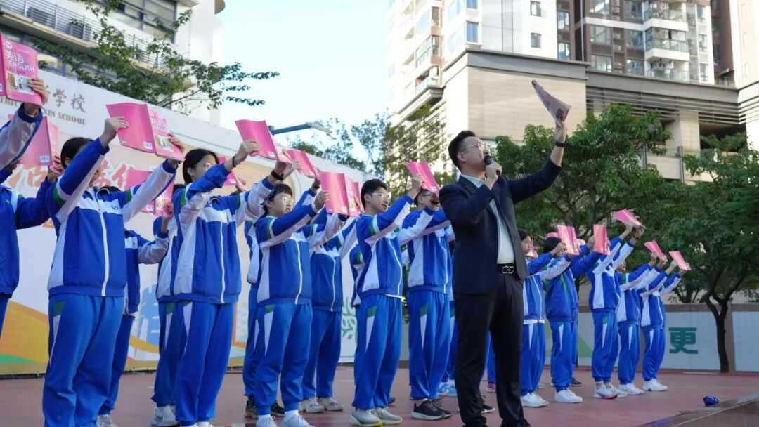 在仪式上,王传平副校长寄语同学们:“读出激情,读出节奏,更要读出面向未来的底气与自信。”他鼓励大家以饱满的状态投入早读,在琅琅书声中夯实基础、提升能力,展现九年级学子的青春风采。