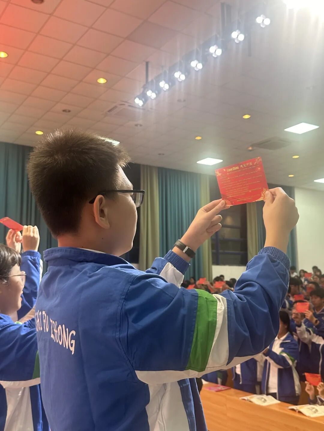最后,一篇激昂澎湃的“I Love China”将全场气氛推向高潮。它让同学们深切体会到:大声朗读,就是把自信喊出来,把气场读出来!